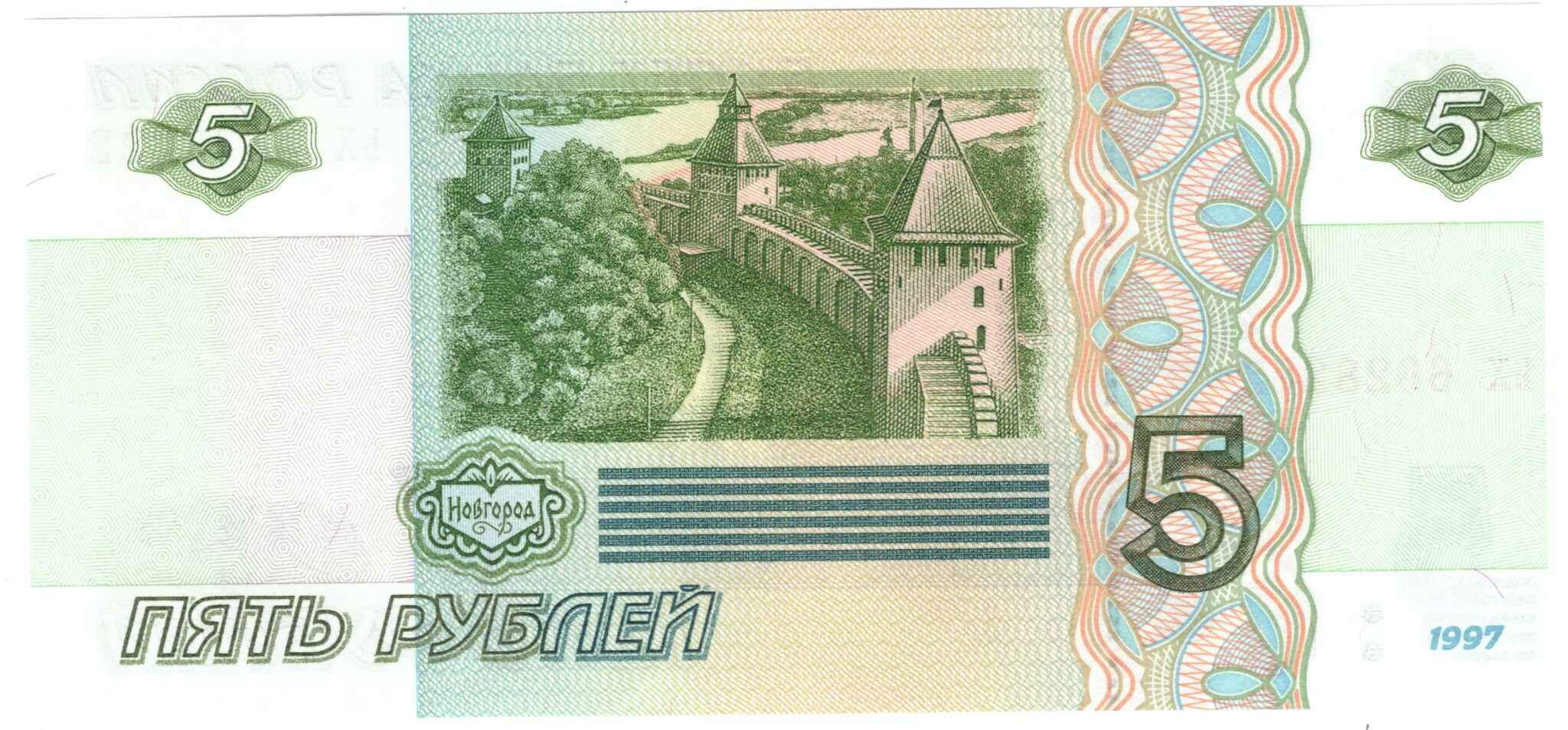 5 рублей 1997 банкнота UNC пресс Красивый номер ЬХ ***999