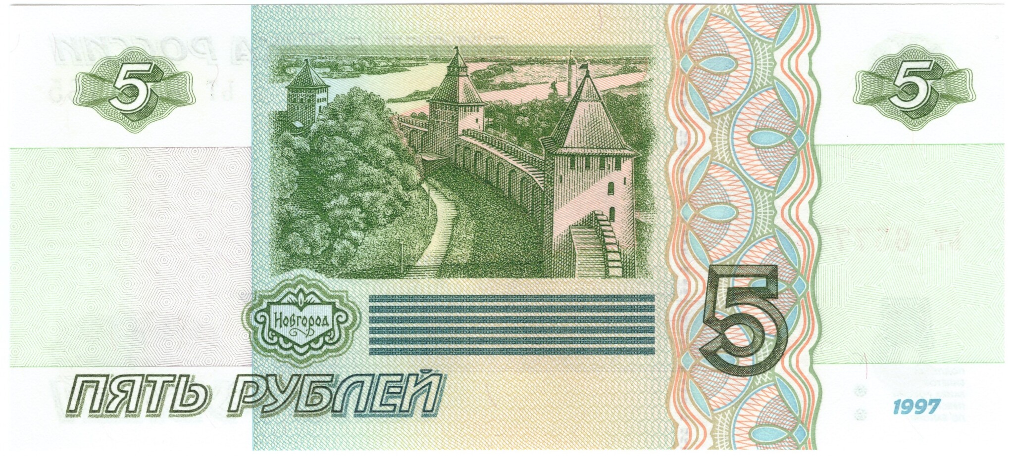 5 рублей 1997 банкнота UNC пресс Красивый номер ЬТ 6577765