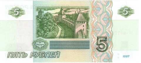 5 рублей 1997 банкнота UNC пресс Красивый номер ЬТ **7777*