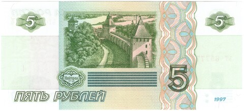 5 рублей 1997 банкнота UNC пресс Красивый номер ЬТ **7777*
