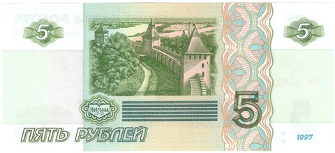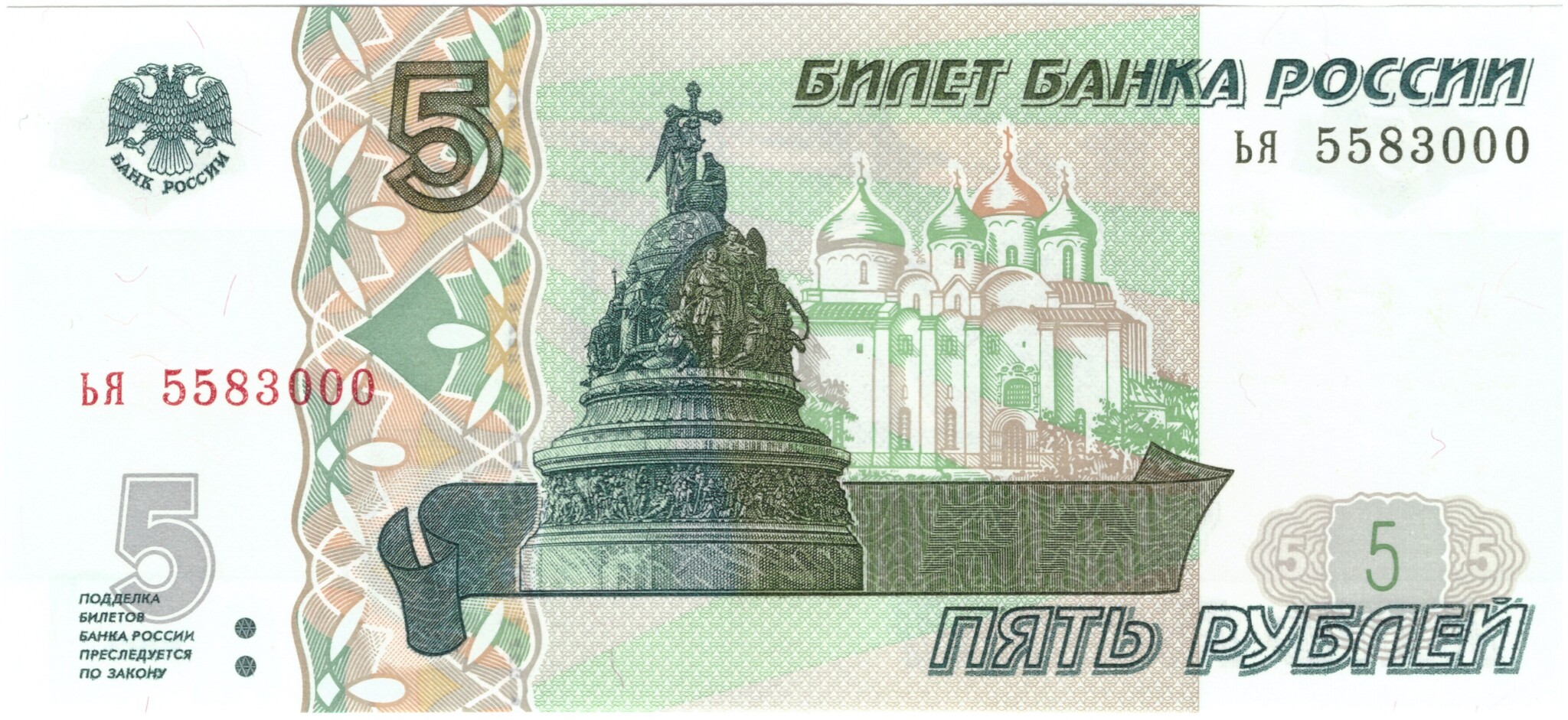 5 рублей 1997 банкнота UNC пресс Красивый номер ЬЯ ***000