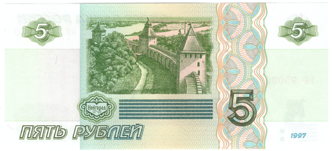 5 рублей 1997 банкнота UNC пресс Красивый номер ЬЯ ***999
