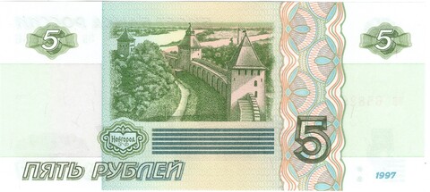 5 рублей 1997 год Пресс UNC номер Радар ЭВ 658*856