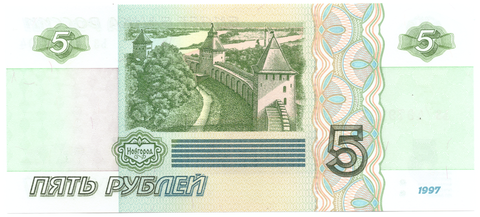5 рублей 1997 год Пресс UNC номер радар ЬЗ 4979794
