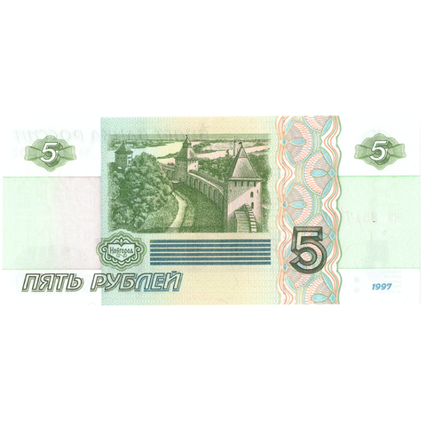 5 рублей 1997 года банкнота UNC пресс Красивый номер ьа 444