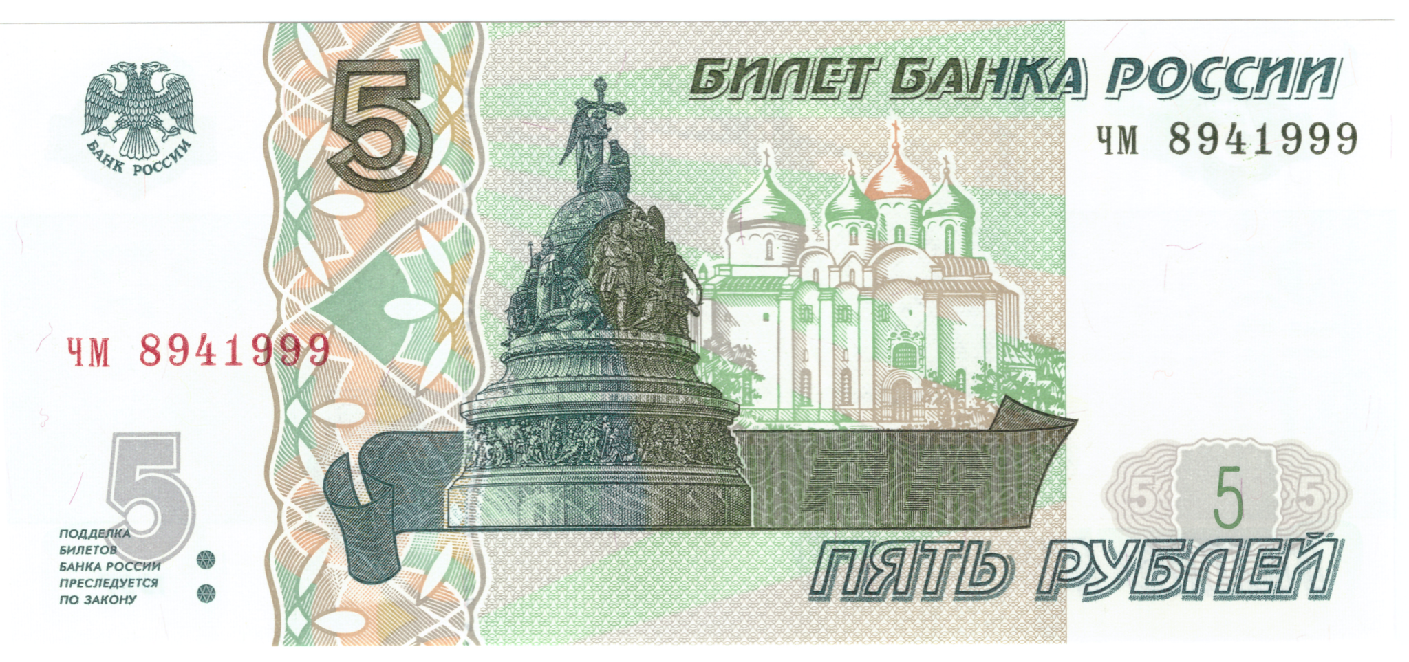 5 рублей 1997 пресс UNC красивый номер чм***999