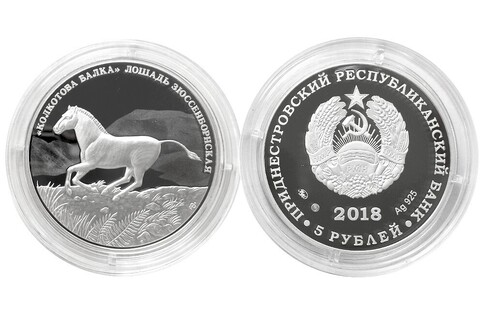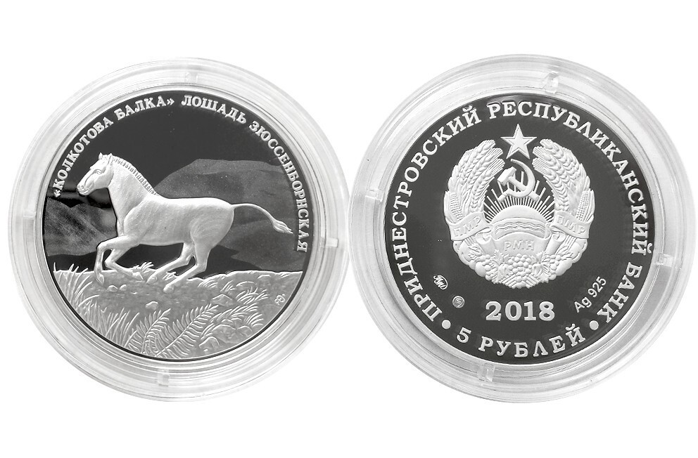 5 рублей 2018 год. Лошадь Зюссенборнская. Колкотова балка. Приднестровье. Серебро