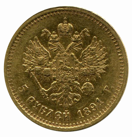 5 рублей. Александр III. АГ-АГ. 1891 год. XF-AU