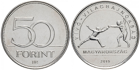 50 форинтов 2019 г. Венгрия. Фехтование. UNC