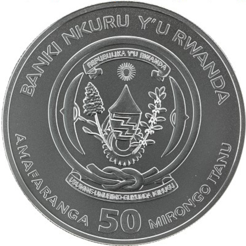 50 франков. Корабль парусник. Виктория Морская унция. Руанда. 2019 год. BrUNC