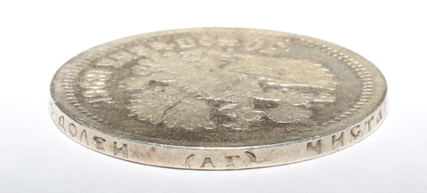 Реверс: слева вдоль края монеты надпись «Б.М. НИКОЛАЙ II ИМПЕРАТОР», справа вдоль края монеты надпись «И САМОДЕРЖЕЦ ВСЕРОСС.», в середине обращенная влево голова Императора Российской империи Николая II.