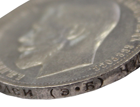 Аверс: В центре профильный портрет влево императора Николая II. Слева надпись «Б.М. НИКОЛАЙ II ИМПЕРАТОР», справа - «И САМОДЕРЖЕЦ ВСЕРОСС.». По окружности канта имеются рельефные элементы, выполненные в виде зубцов.