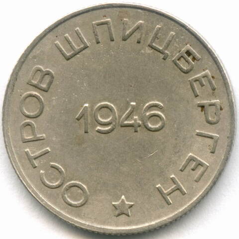 Аверс: В центре указана дата выпуска - "1946". По окружности, вдоль канта, надпись: "ОСТРОВ ШПИЦБЕРГЕН". Внизу - пятиконечная звезда.