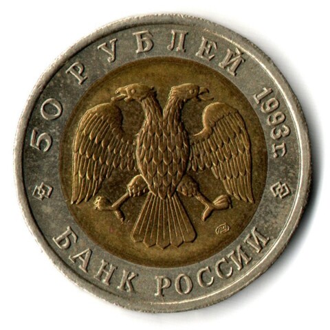 50 рублей 1993 года Черноморская афалина. серия Красная книга СССР VF