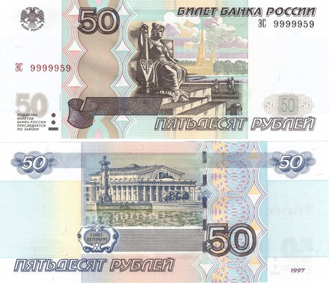 50 рублей 1997 г. Красивый номер 9999959. Пресс UNC