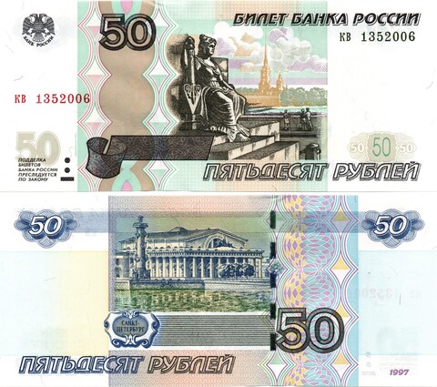 50 рублей 1997 г. Модификация 2004 г. Год свадьбы или год рождения 2006 г. Пресс UNC