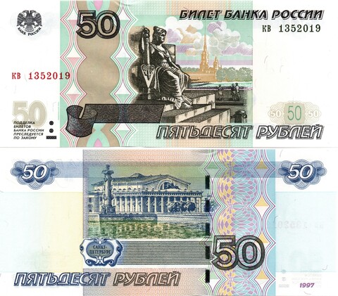 50 рублей 1997 г. Модификация 2004 г. Год свадьбы или год рождения 2019 г. Пресс UNC