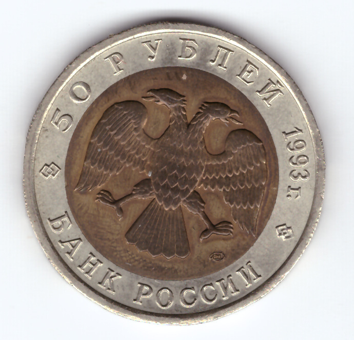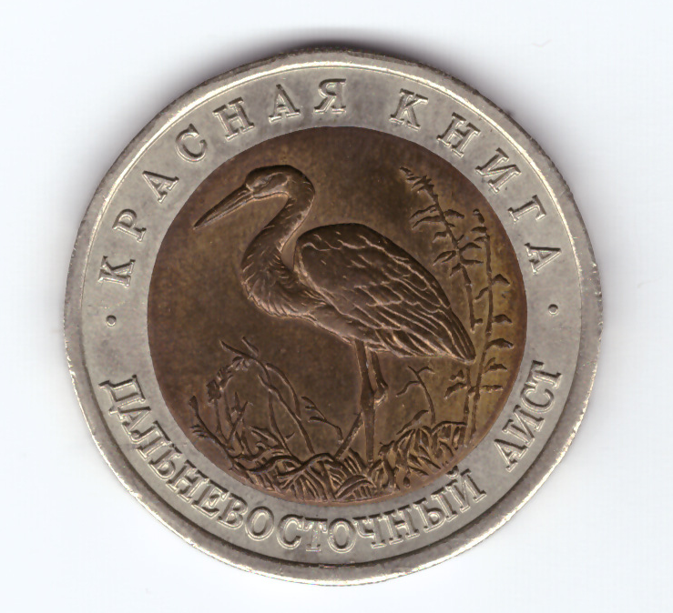 Центральный банк Российской Федерации продолжил выпуск новых монет серии "Красная книга" и 29 сентября 1993 года он выпустил в обращение монету 50 рублей «Дальневосточный аист».