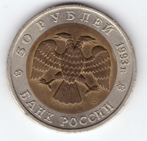 Центральный банк Российской Федерации продолжил выпуск новых монет серии "Красная книга" и 29 сентября 1993 года он выпустил в обращение монету 50 рублей «Гималайский медведь».