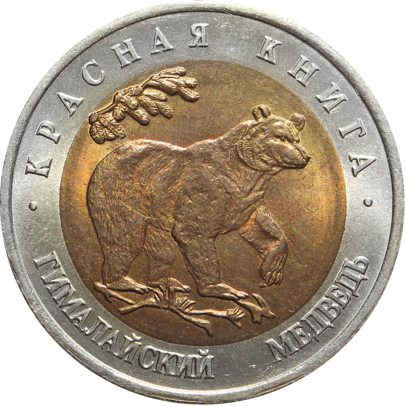 Центральный банк Российской Федерации продолжил выпуск новых монет серии "Красная книга" и 29 сентября 1993 года он выпустил в обращение монету 50 рублей «Гималайский медведь».