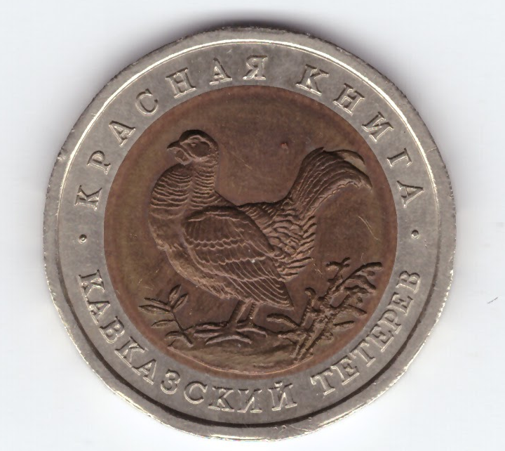 Центральный банк Российской Федерации продолжил выпуск новых монет серии "Красная книга" и 29 сентября 1993 года он выпустил в обращение монету 50 рублей «Кавказский тетерев».