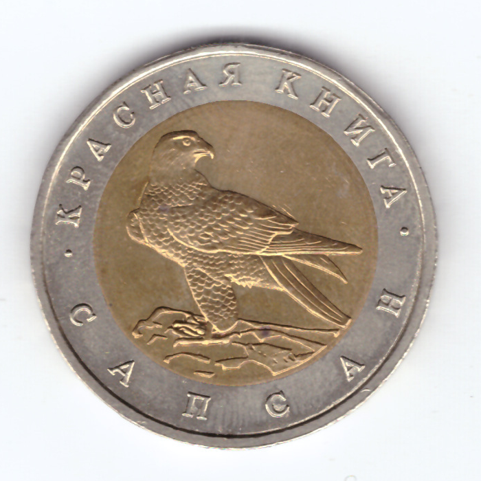 Центральный банк Российской Федерации продолжил выпуск новых монет серии "Красная книга" и 10 ноября 1994 года он выпустил в обращение монету 50 рублей «Сапсан».