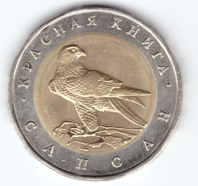 Центральный банк Российской Федерации продолжил выпуск новых монет серии "Красная книга" и 10 ноября 1994 года он выпустил в обращение монету 50 рублей «Сапсан».