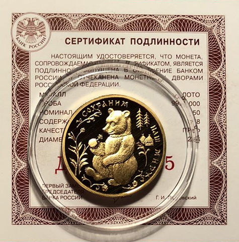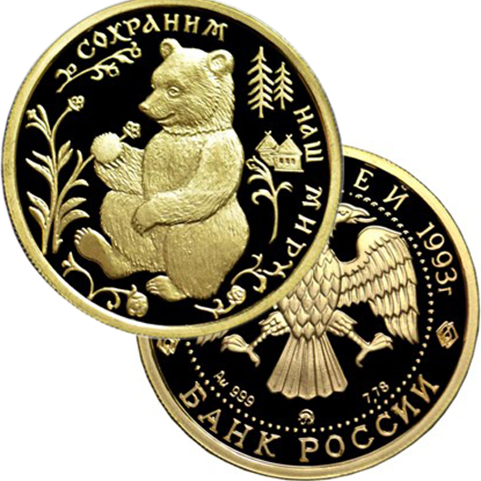 50 рублей. Сохраним наш мир. Бурый медведь. 1993 год