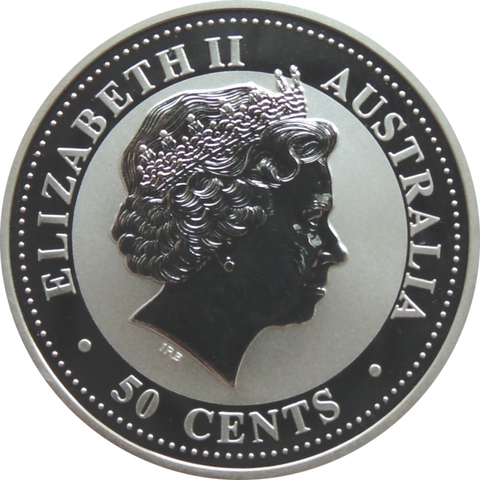 В центре – рельефное изображение портрета Ее Величества Елизаветы II. По окружности надписи: ELIZABETH II (Елизавета II), AUSTRALIA (Австралия), номинал 50 CENTS (50 центов), год выпуска 1999, 1/2 oz (1/2 унции = 15,55 гр.) и характеристика металла 999 SILVER (серебро 999 пробы).