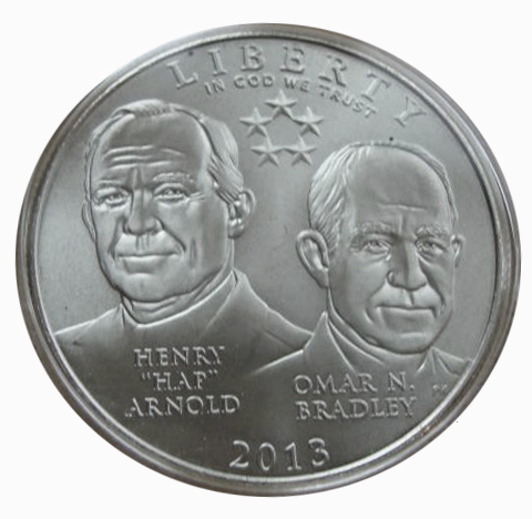 50 центов 2013 год. Пятизвёздные генералы Генри Харли Арнолд и Омар Нельсон Брэдли. США. UNC