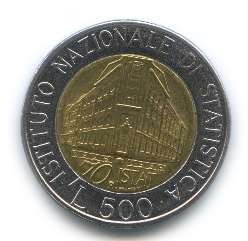 500 лир. 70 лет Национальному институту статистики. Италия. 1996 год. XF-AU