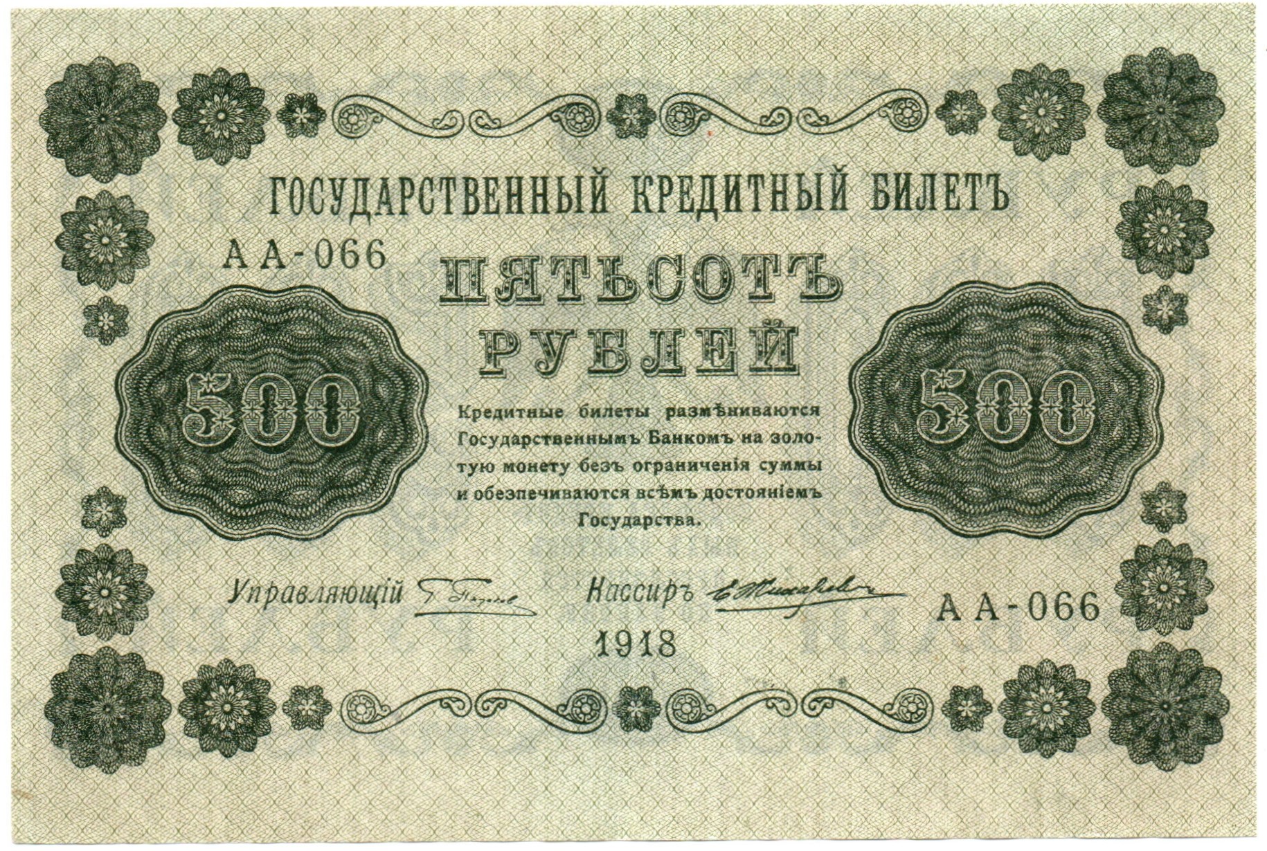 500 рублей 1918 г. Кредитный билет VF. Подобная сохранность из обращения. Серия и номер случайные