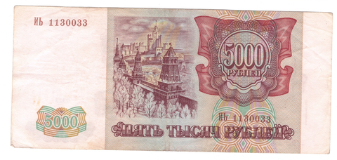 5000 рублей 1993 Модификация 1994 года Серия ИЬ VF