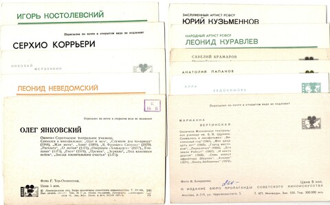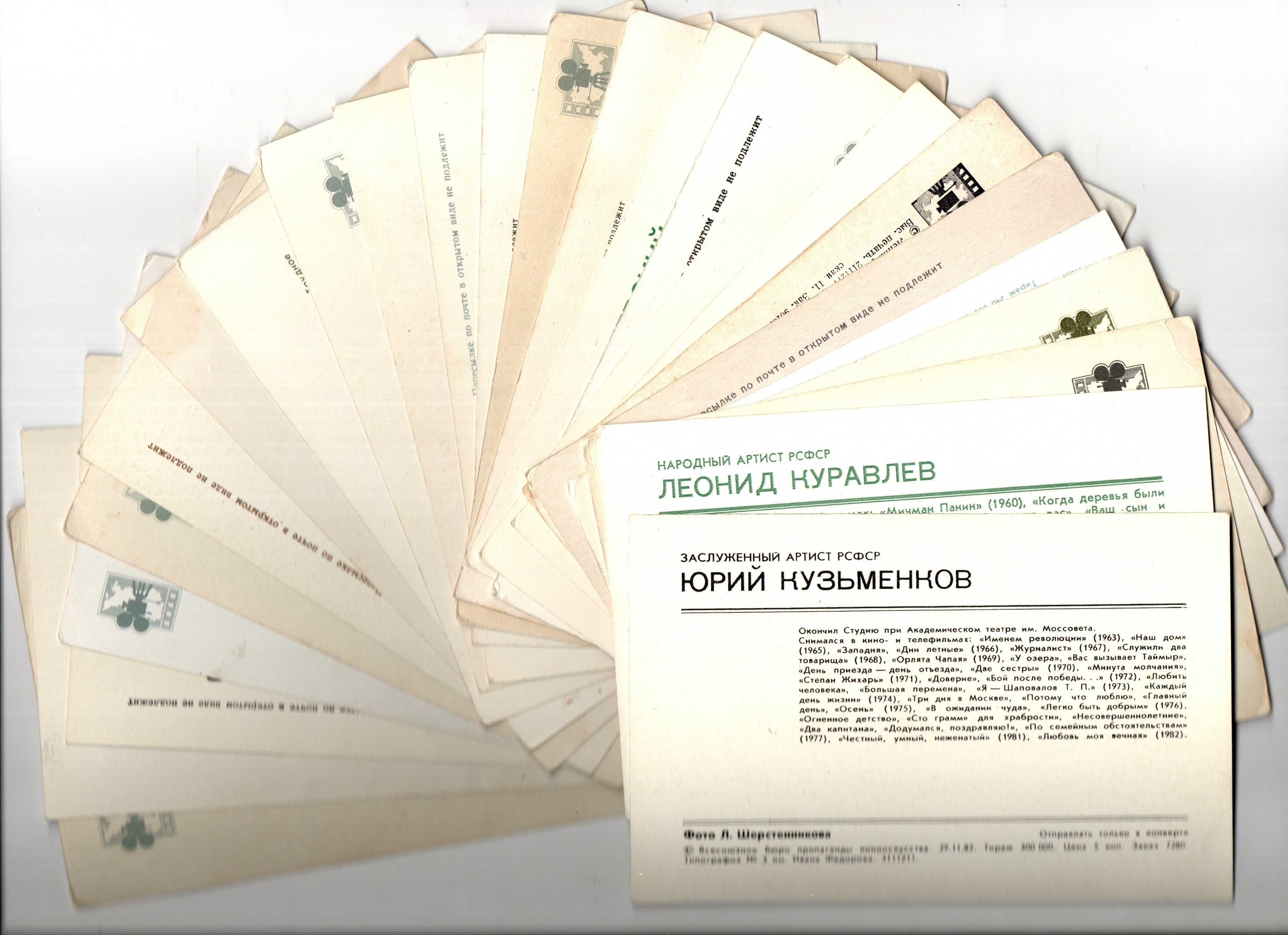 №51 Открытки Артисты и актёры СССР 1970–1980-е г. 25 штук. Цветные, чистые, без повторов