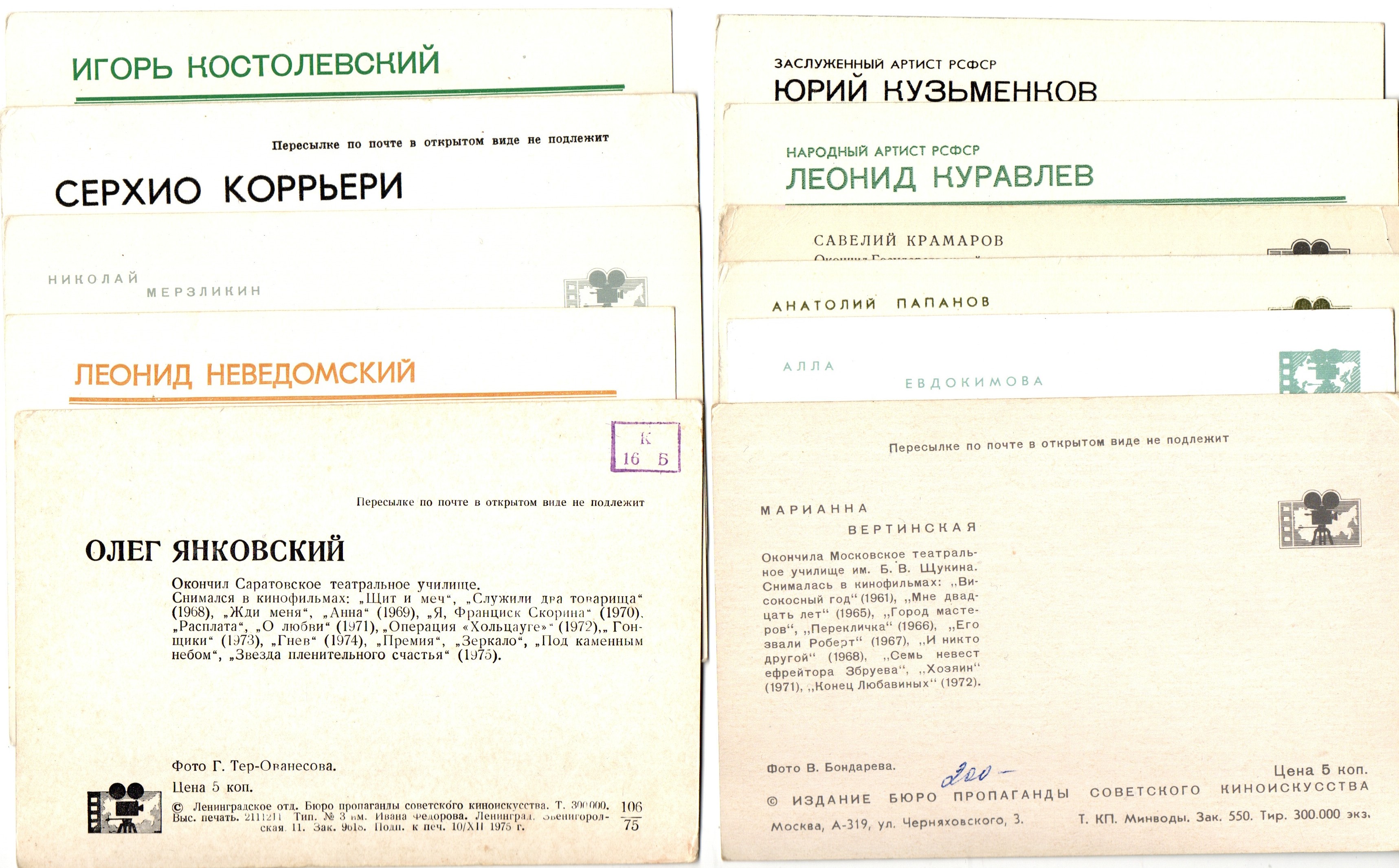 Подборка открыток Артистов и актёров театра и кино СССР 1970–1980-е г. 25 штук. Цветные, чистые, без повторов. Погрузитесь в атмосферу золотой эпохи советского театра и кино! В набор входит 25 оригинальных открыток с портретами артистов СССР 1970–1980-х годов .Кому подойдёт: коллекционерам советской фотооткрытки ценителям истории кино и театра СССР для оформления интерьера в стиле ретро для творческих проектов и вдохновения Отличный вариант подарка для любителей винтажной эстетики и эпохи 50–60-70-80 х годов.