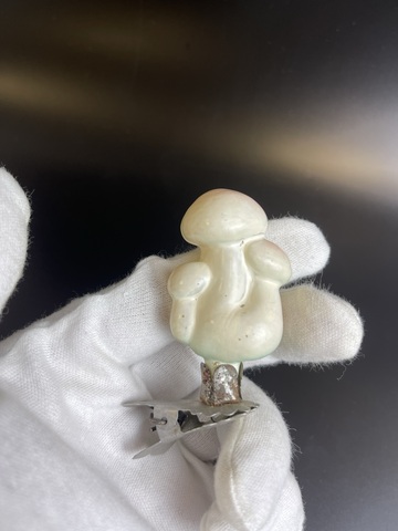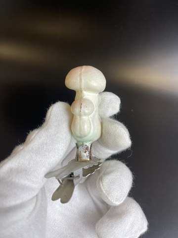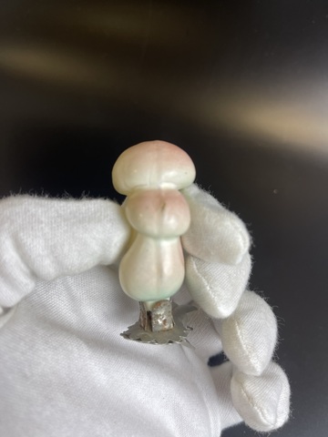 Ёлочная игрушка Грибы (белые?) на прищепке, стекло, винтаж, небольшой скол под прищепкой, СССР 1950-1980 гг. Состояние на фото