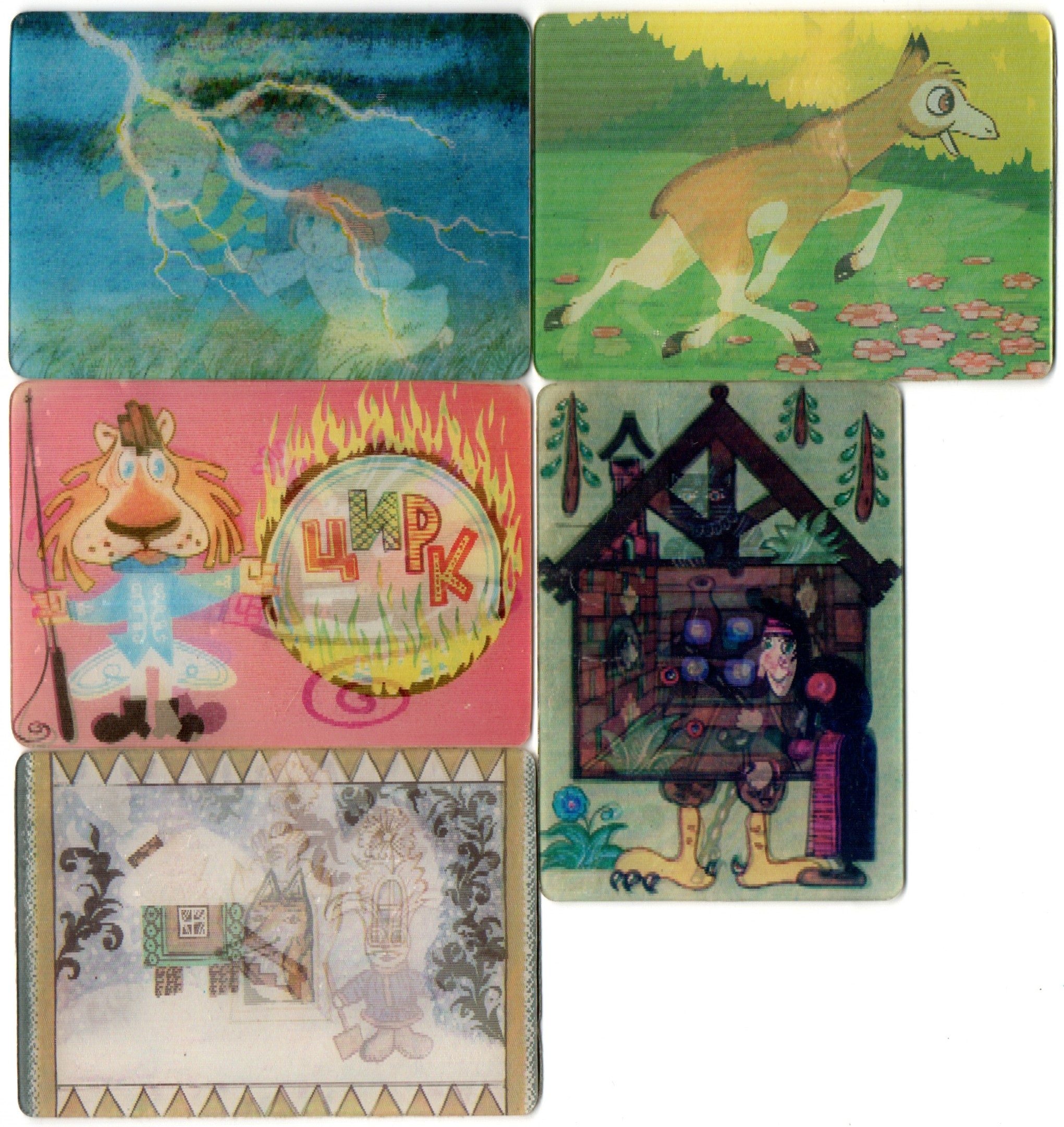 № 73 Набор из 5 переливных (стерео) Календариков . Мультфильмы СССР 1985, 1986, 1990 гг. Переливные мультфильмы : Ничуть не страшно / Девичьи узоры / Впервые на арене / Ты враг или друг! / Избушка ледяная . Карманный календарик переливной объемный 3D. СССР. Художники СССР. Состояние на фото
