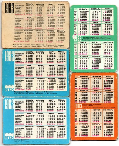 № 77 Набор из 5 переливных (стерео) Календариков . Мультфильмы СССР 1983 год.