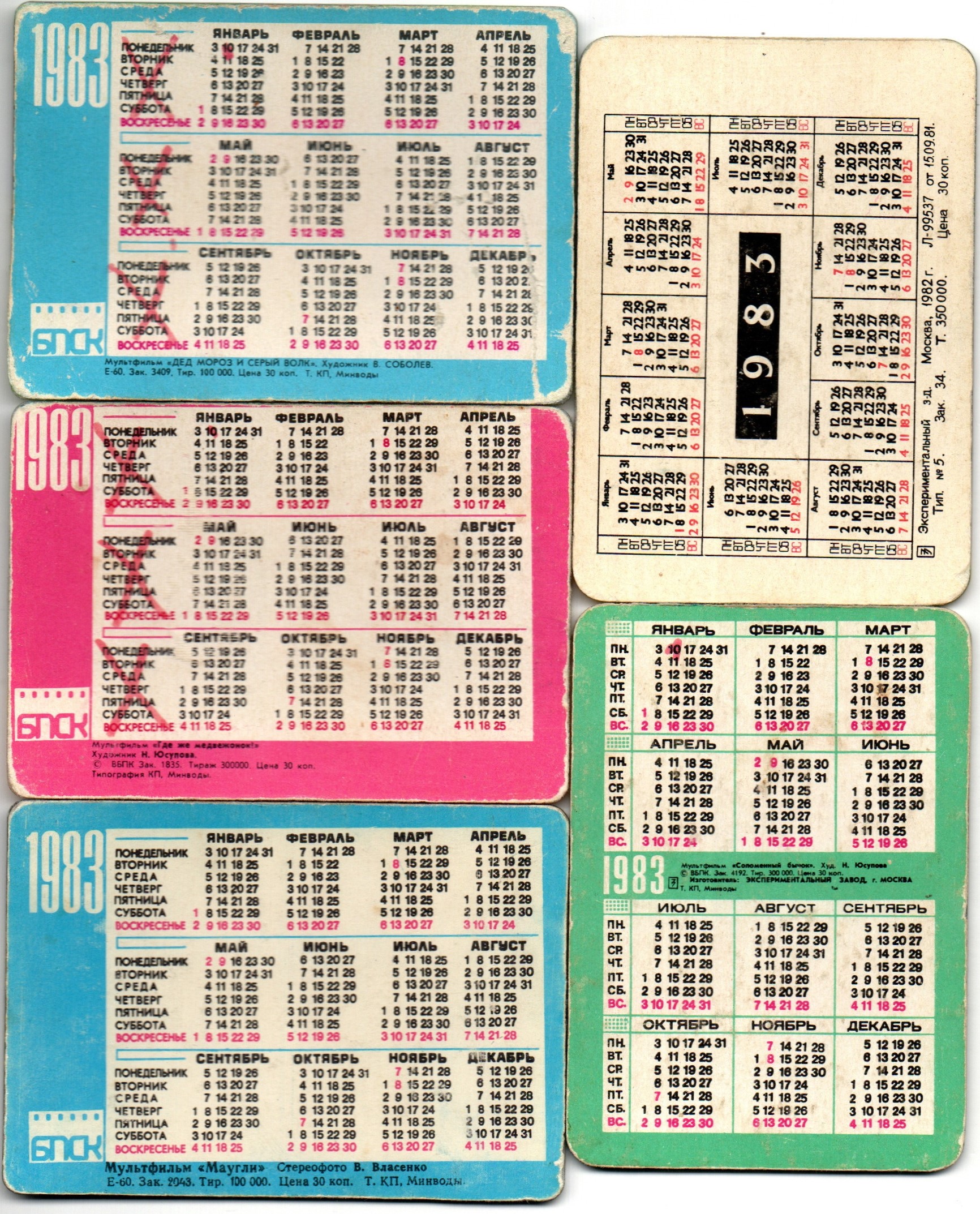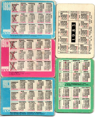 № 79 Набор из 5 переливных (стерео) Календариков . Мультфильмы СССР 1983 год.