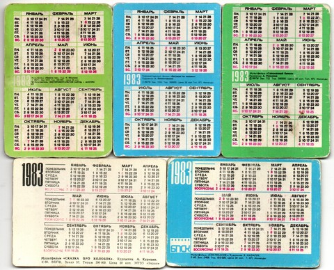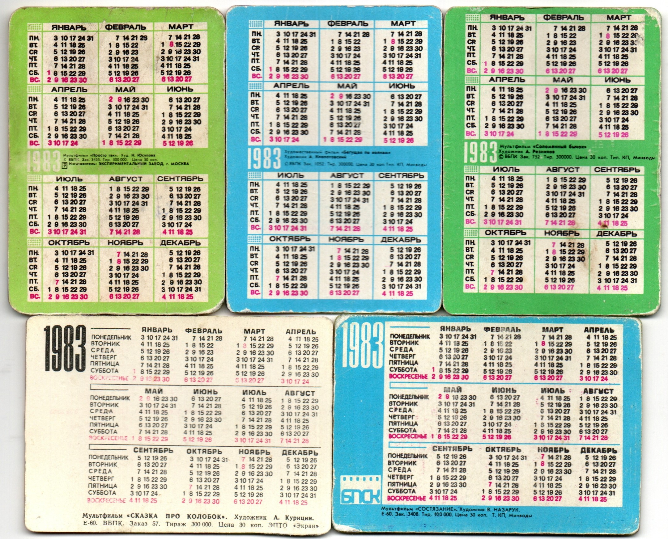 № 80 Набор из 5 переливных (стерео) Календариков . Мультфильмы СССР 1983 год.