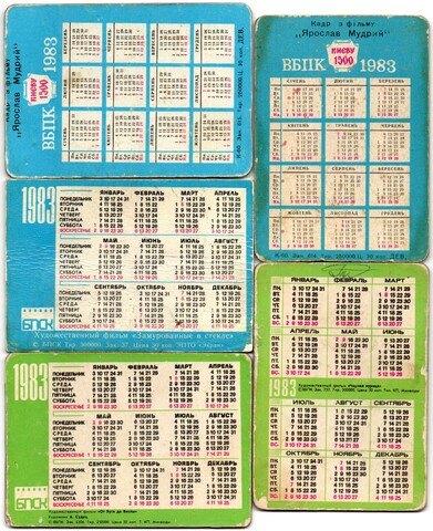 № 81 Набор из 5 переливных (стерео) Календариков . Художественные фильмы СССР 1983 год.