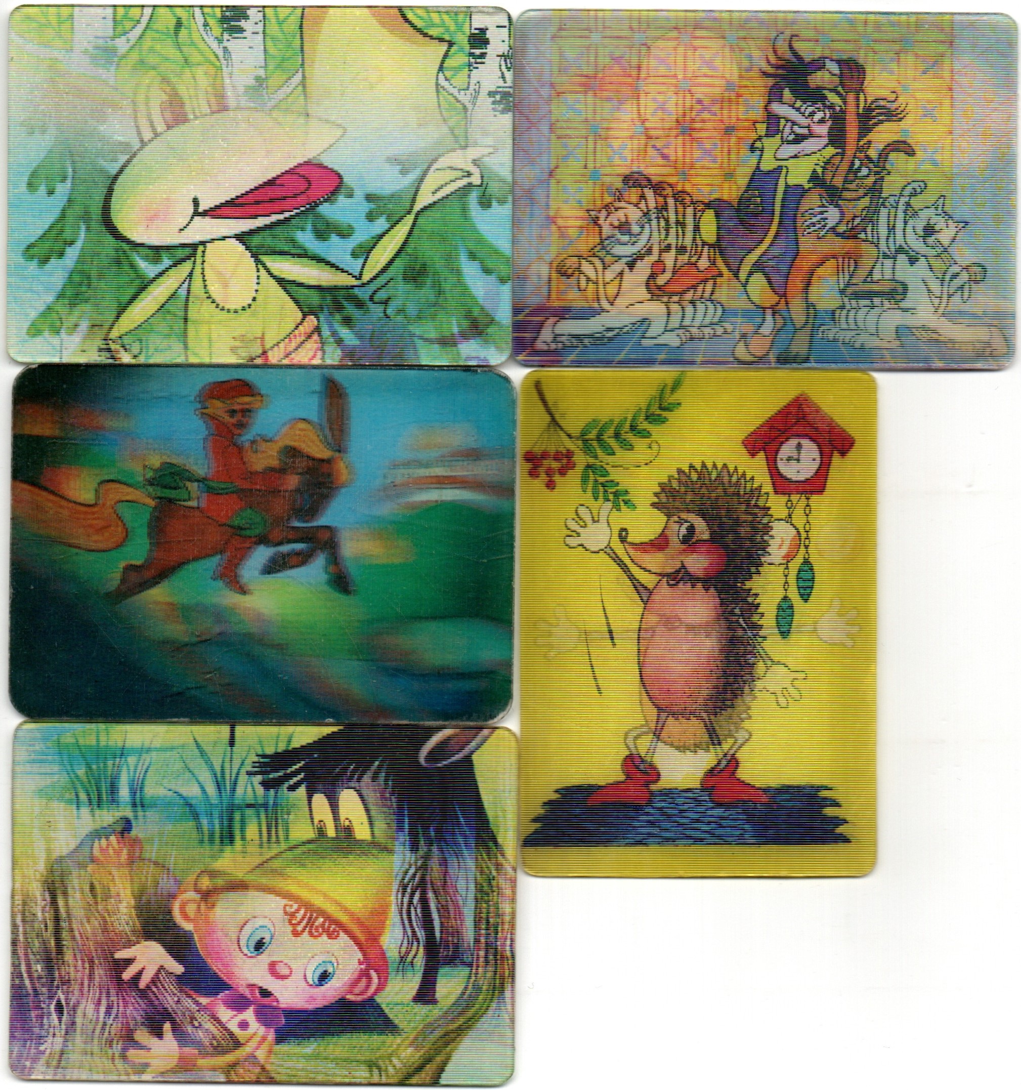 № 83 Набор из 5 переливных (стерео) Календариков . Мультфильмы СССР 1984 год. Переливные мультфильмы : Отважный лягушонок / поросенок в колючей шубке / Конек горбунок / Самый маленький гном / Мук скороход. Карманный календарик переливной объемный 3D. СССР. Художники СССР. Погрузитесь в атмосферу детства с уникальным набором из 5 переливных стерео календариков с героями любимых мультфильмов СССР. При наклоне изображение «оживает» и меняется — создавая эффект движения и объёма благодаря лентикулярной (3D) технологии. Особенности: В комплекте: 5 разных календариков с ограниченным тиражом Переливной стерео-эффект (изображение меняется при повороте) Яркая печать и чёткая детализация Плотный пластик, устойчивый к износу Карманный формат — удобно хранить или коллекционировать Для кого подойдёт: Коллекционерам советской атрибутики Поклонникам классической анимации В подарок родителям и друзьям — для тёплой ностальгии Для оформления альбома или тематической коллекции Набор станет приятным сувениром и атмосферным напоминанием о добрых мультфильмах, знакомых с детства. Отличный вариант подарка или пополнения личной коллекции . Состояние на фото