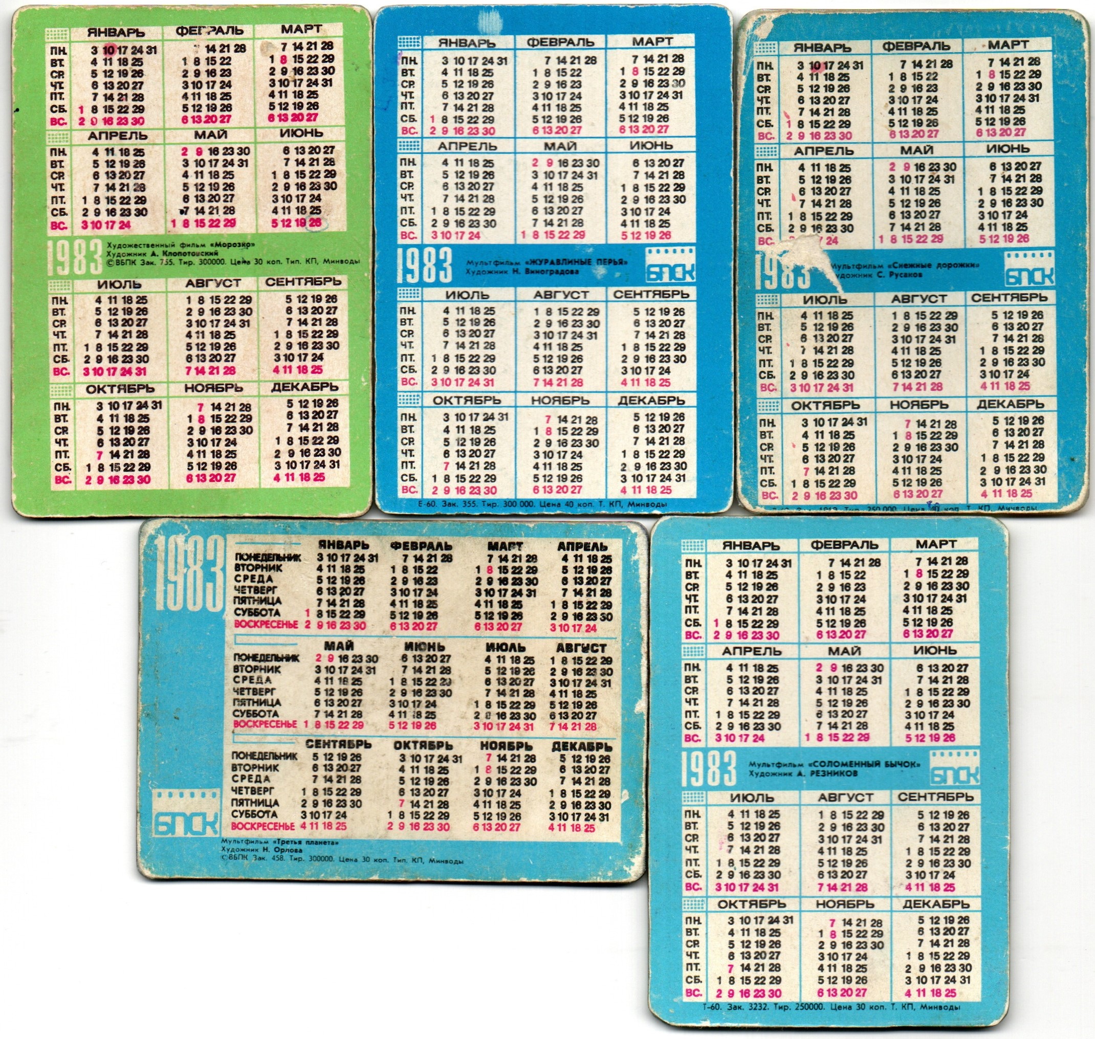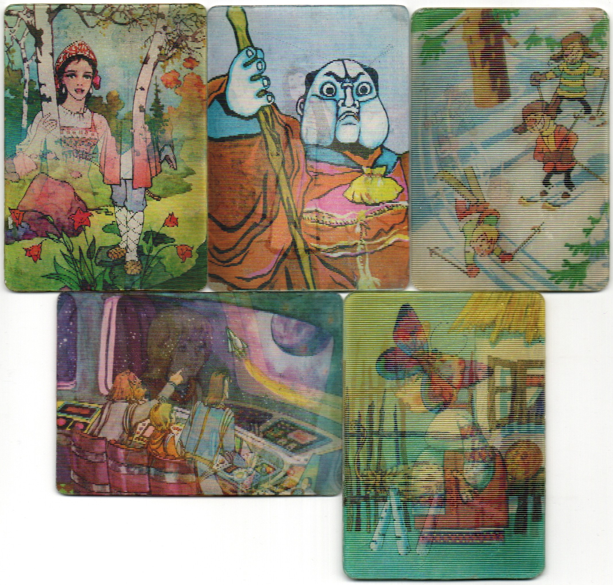 № 86 Набор из 5 переливных (стерео) Календариков . Мультфильмы СССР 1984 год. Переливные мультфильмы : Соломенный бычок / Третья планета / Снежные дорожки / Морозко / Журавлиные перья . Карманный календарик переливной объемный 3D. СССР. Художники СССР. Погрузитесь в атмосферу детства с уникальным набором из 5 переливных стерео календариков с героями любимых мультфильмов СССР. При наклоне изображение «оживает» и меняется — создавая эффект движения и объёма благодаря лентикулярной (3D) технологии. Особенности: В комплекте: 5 разных календариков с ограниченным тиражом Переливной стерео-эффект (изображение меняется при повороте) Яркая печать и чёткая детализация Плотный пластик, устойчивый к износу Карманный формат — удобно хранить или коллекционировать Для кого подойдёт: Коллекционерам советской атрибутики Поклонникам классической анимации В подарок родителям и друзьям — для тёплой ностальгии Для оформления альбома или тематической коллекции Набор станет приятным сувениром и атмосферным напоминанием о добрых мультфильмах, знакомых с детства. Отличный вариант подарка или пополнения личной коллекции . Состояние на фото