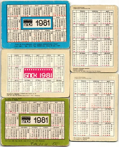 № 92 Набор из 5 переливных (стерео) Календариков . Мультфильмы СССР 1981 год.