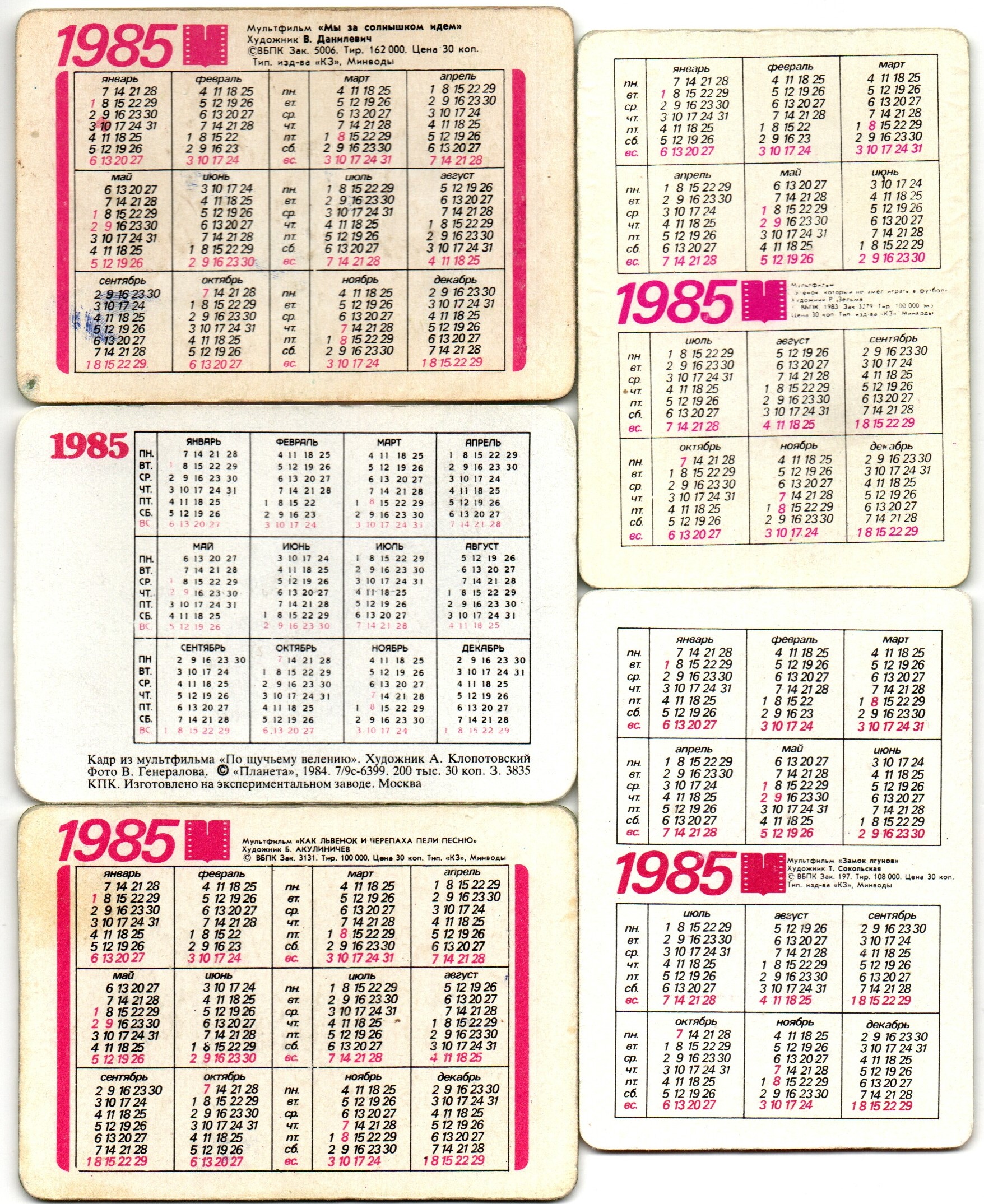 № 99 Набор из 5 переливных (стерео) Календариков . Мультфильмы СССР 1985 год.