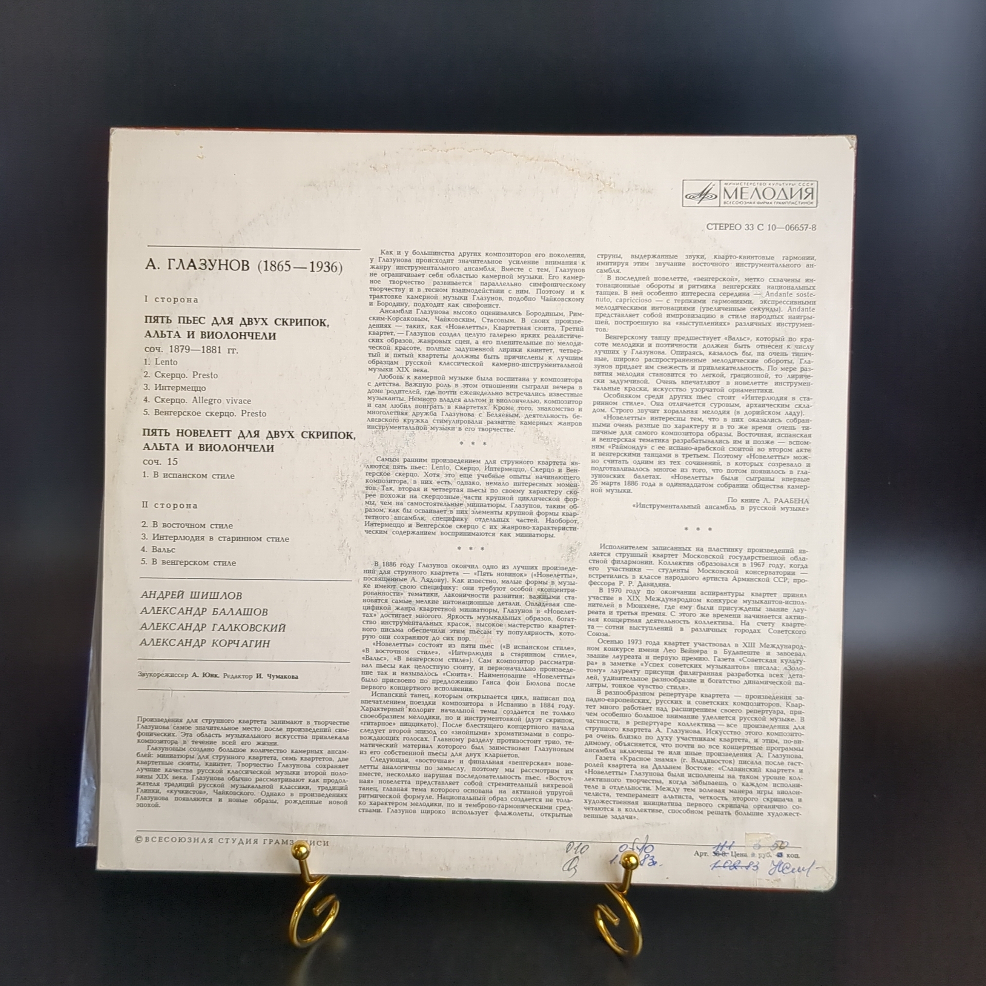 А.Глазунов виниловая пластинка 12 дюймов Пять пьес для струнного квартета/пять новелетт для струнного концерта, LP, классика винтаж СССР Мелодия. Классическая музыка на виниле. Конверт EX+ / Диск EX+