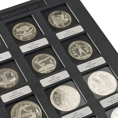 Капсулы с монетами хранятся в кассетах, состоящих из двух частей. Каждая кассета вмещает 12 капсул, размером 50х50 мм. Капсулы размещаются на нижней части и закрываются верхней с помощью специальных замков. На кассетах предусмотрены поля для маркировки. Их количество и размеры соответствуют наклейкам, расположенным на дополнительном листе. Текст на наклейках наносится вручную, либо печатается с помощью специального шаблона.