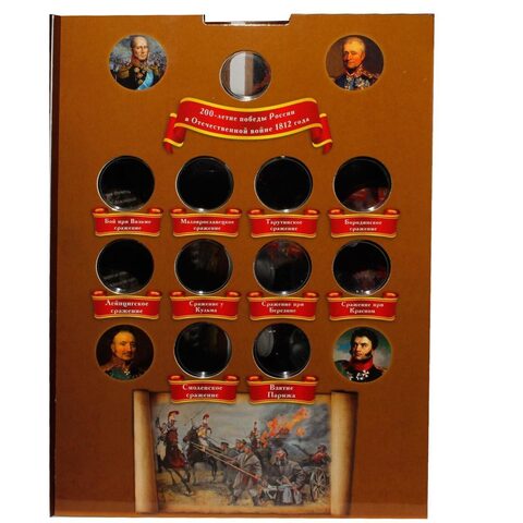 Альбом для монет серии Бородинское сражение 1812 (28 ячеек) капсульного типа (СОМС)
