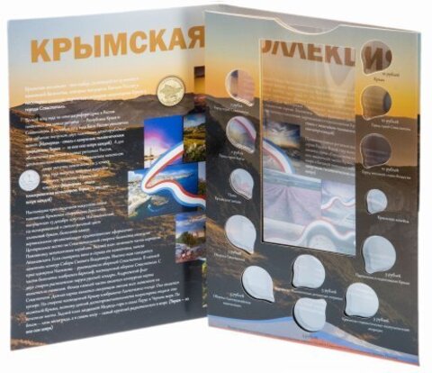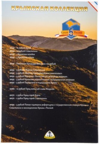 Крымская коллекция — это набор, состоящий из 13 монет и памятной банкноты, которые выпущены Банком России после воссоединения Крыма и Севастополя с Россией, и посвящены славным страницам истории полуострова и города Севастополь.