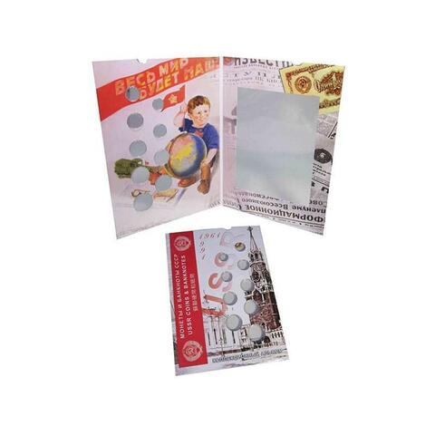 Альбом для монет и банкнот регулярного выпуска 1961-1991 годов.Для размещение монет номиналом 1,2,3,5,10,15,20,50 копеек и 1 рубль